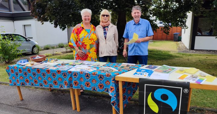 Zur Fairen Woche gab es in Remagen einige Jubiläen: 80 Jahre Frieden, 50 Jahre Fairer Handel und die Rezertifizierung der Stadt Remagen zur Fairtrade-Stadt. Das wurde am Samstag, dem 27. September an der Brücke von Remagen gebührend gefeiert. Der Weltladen hat ein faires Büffet mit allerlei Leckereien, fairem Orangensaft, Kaffee und Sekt aufgebaut. Nach einer Begrüßung durch Bürgermeister Björn Ingendahl fand die Ehrung von Walburga Greiner, die den Weltladen Remagen-Sinzig mit viel Engagement leitet sowie von Karin Kelan vom „Eine Welt Fairein Remagen“ und Barbara Heimbach vom Verein „Friedensmuseum Brücke von Remagen“ statt. Mit einem beeindruckendem Musikbeitrag ging es dann zum gemütlichen Teil über. Eine größere Anzahl Besucher und Beteiligte freuten sich über das faire Frühstück und die guten Gespräche mit Gleichgesinnten. Die Fairtrade-Gruppe Sinzig war durch Monika Mombauer, Claudia Thelen, Sigrid Saak und Renate Adams vertreten, die mit den Kolleginnen aus dem Weltladen schon viele Jahre zusammen arbeiten.